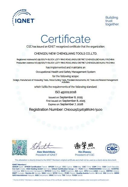 近日,中国检验认证集团四川有限公司专家审核组莅临成都新成量工具有限公司,依据ISO45001:2018职业健康安全管理体系国际标准,开展初次认证审核工作。经全面评估,审核组一致推荐认定:成都新成量工具有限公司符合职业健康安全管理体系认证条件,同意推荐通过。