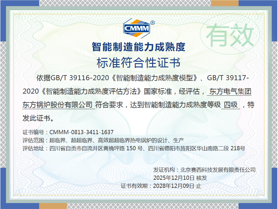 智能制造能力成熟度是国家层面构建的权威认证体系,核心在于助力企业持续强化数字化转型关键能力,其价值贯穿企业战略规划、运营效率、业务创新、生态协同全链条。未来,东方锅炉将继续对标国家标准以评促改、以评促优、以评促建,以本次评估为新起点,开放自身数字化解决方案,带动行业协同转型,为推动行业绿色智能升级贡献更多力量。