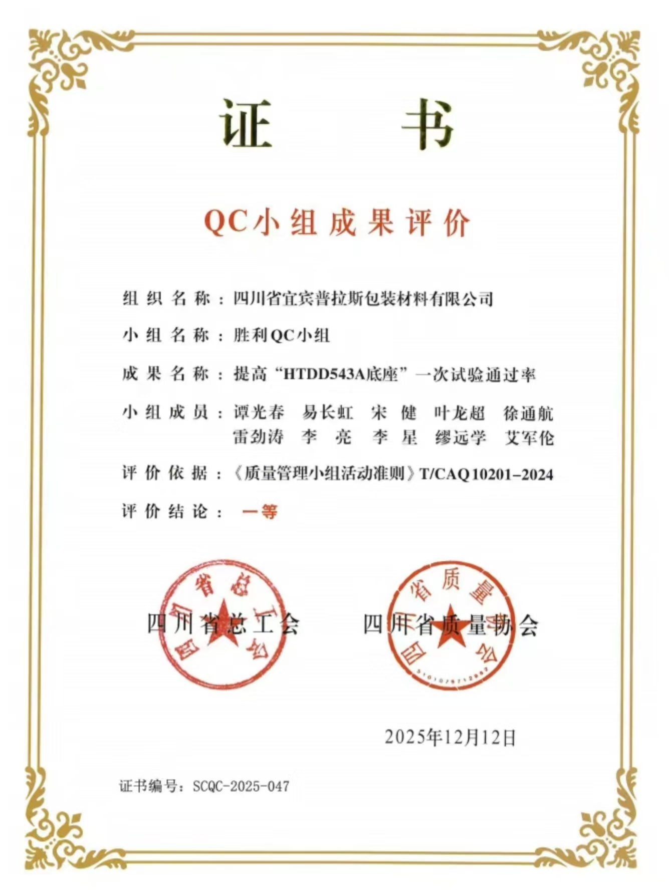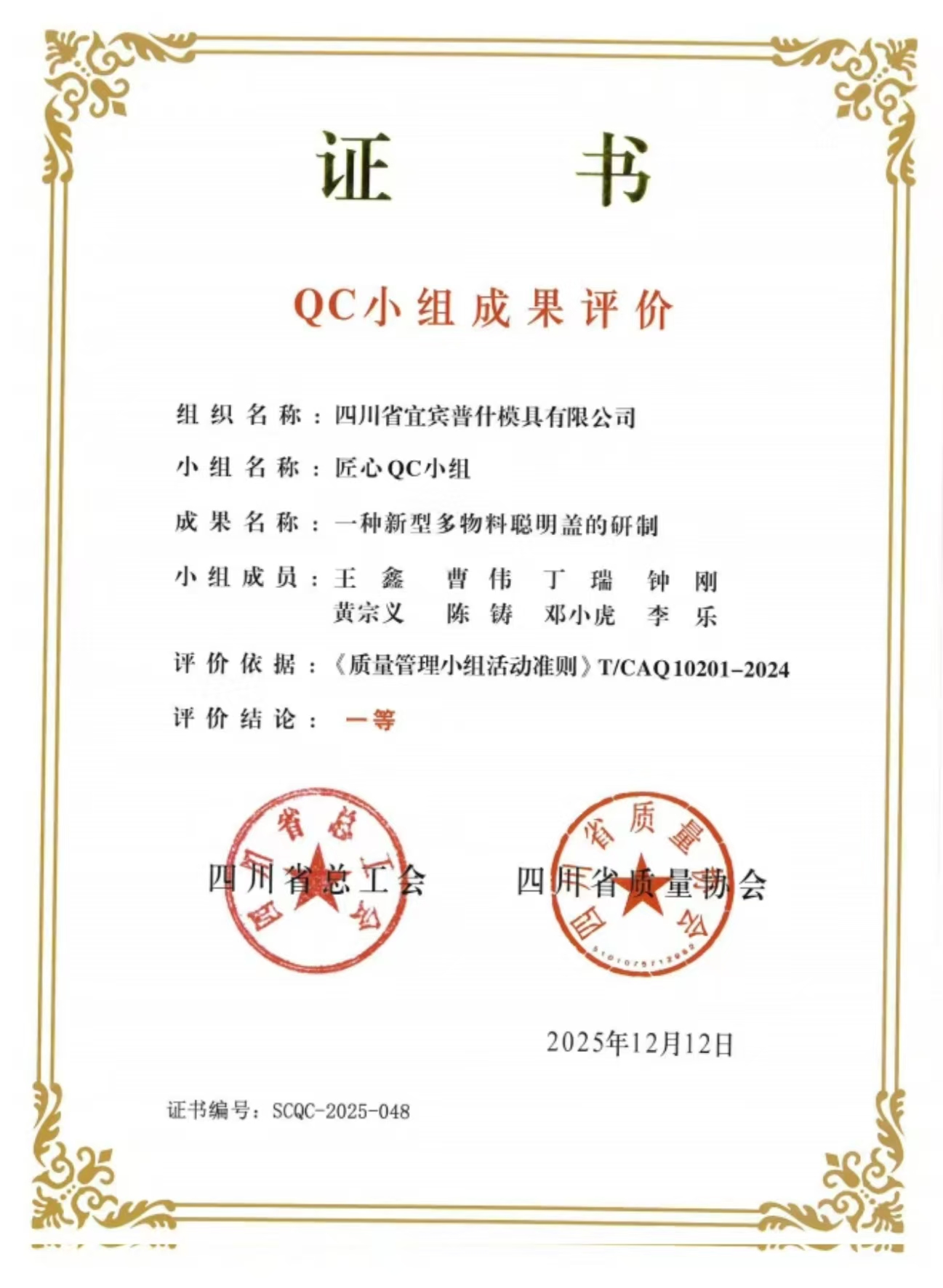 在此次大会上,普什集团和普拉斯公司被授予2025年“四川省质量管理小组活动优秀企业”称号;普什集团共5个QC小组荣获“四川省优秀质量管理小组”(其中,普拉斯公司2个,普什信息化公司2个,普什模具公司1个);5个班组被评为“四川省质量管理信得过班组”(普拉斯公司3个,普什模具公司、普什信息化公司各1个)。五粮液集团公司副总经理,普什集团党委书记、董事长蒋文春,普拉斯公司党总支书记、董事长、总经理周立权荣获“四川省质量管理小组活动卓越领导者”称号;普什集团董事会办公室主任、公司办公室主任游斌,普什3D公司常务副总经理毕键被评为“四川省质量管理小组活动优秀推进者”。