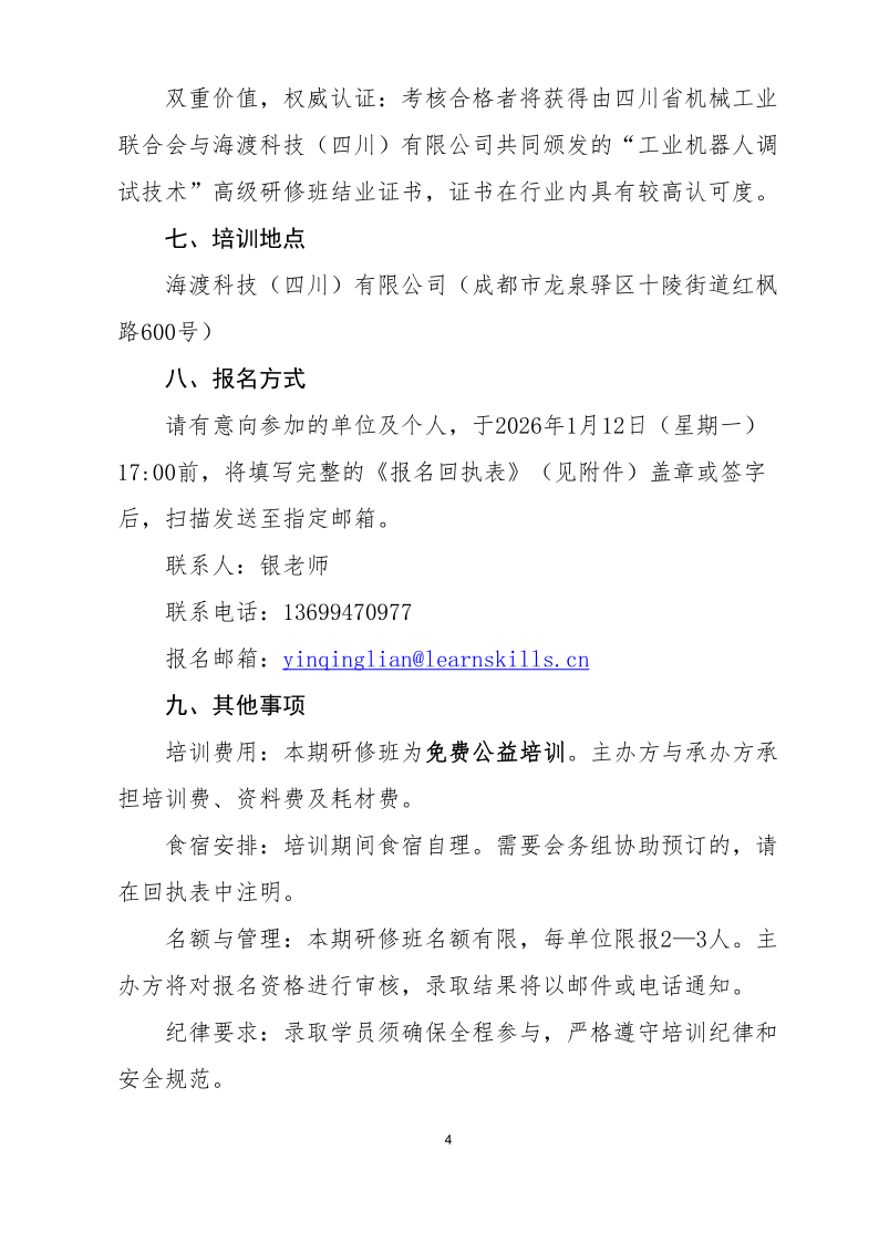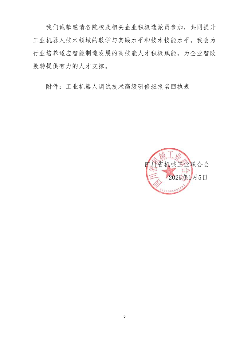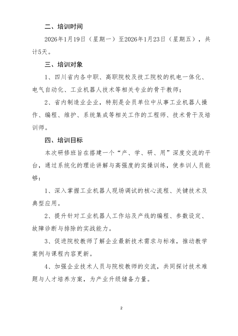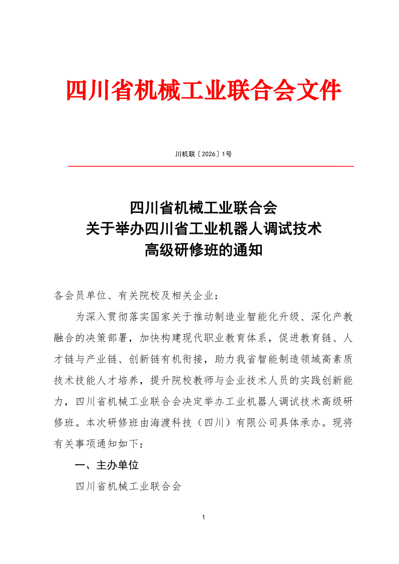 【重要通知】四川省机械工业联合会关于举办四川省工业机器人调试技术高级研修班的通知