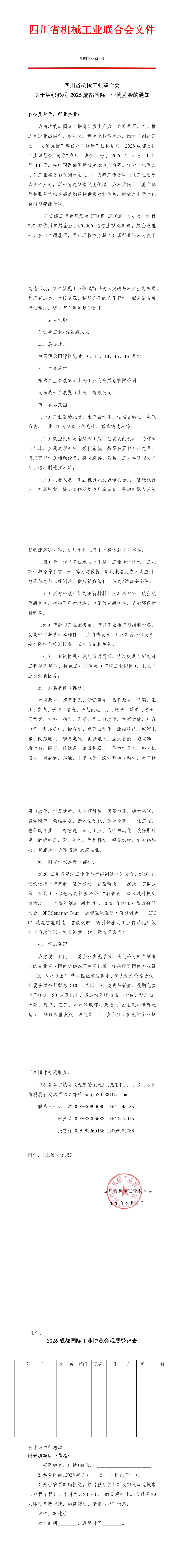 【重要通知】四川省机械工业联合会关于组织参观2026成都国际工业博览会的通知